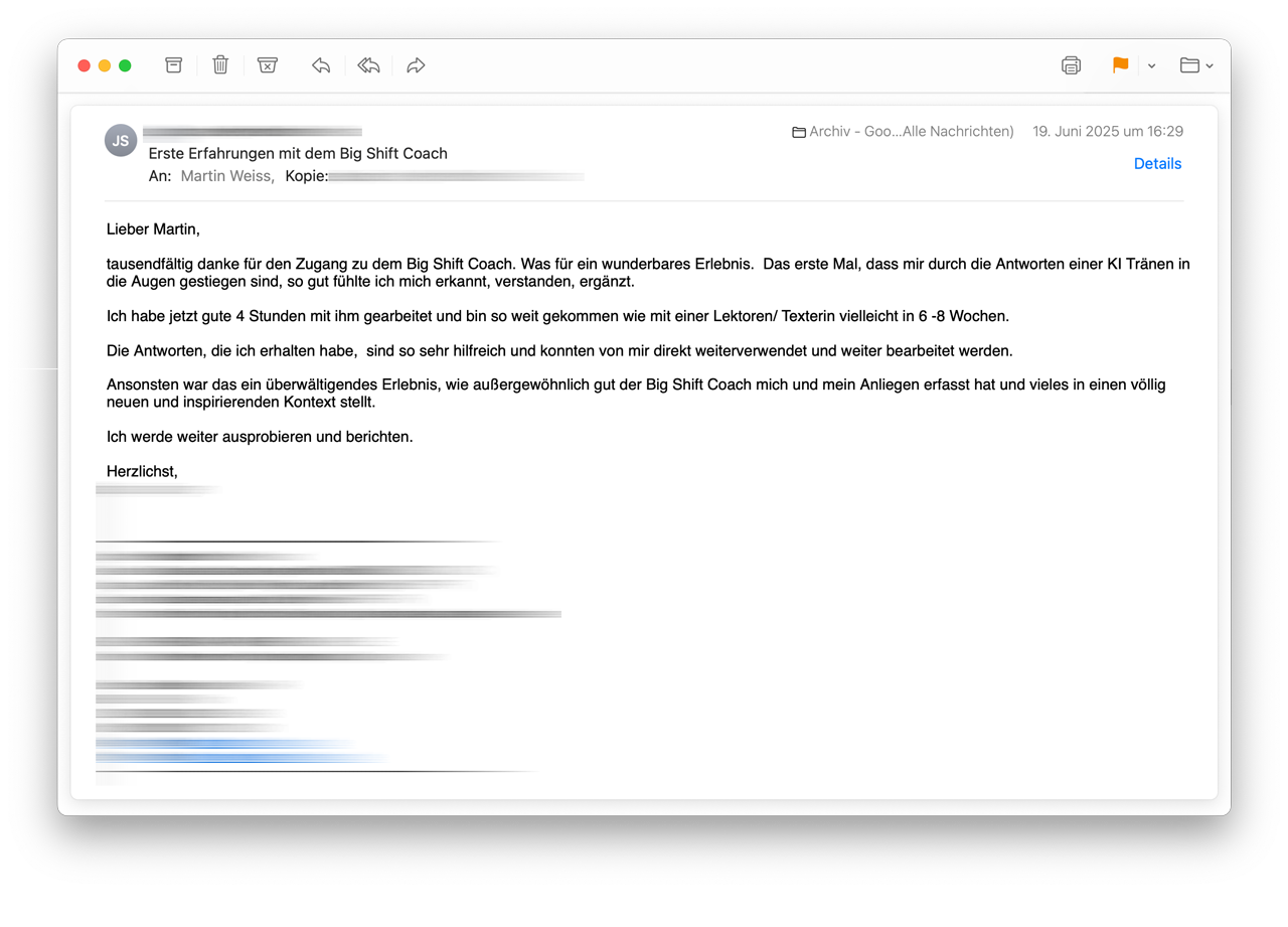 Der Big Shift KI Coach spricht aus, was andere sich nicht trauen – und bleibt dabei immer wertschätzend.